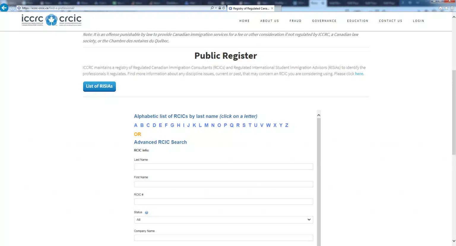 2. You can easily tell if someone is actually a member of the ICCRC or a Canadian Bar Association with a simple search on the licensing body website