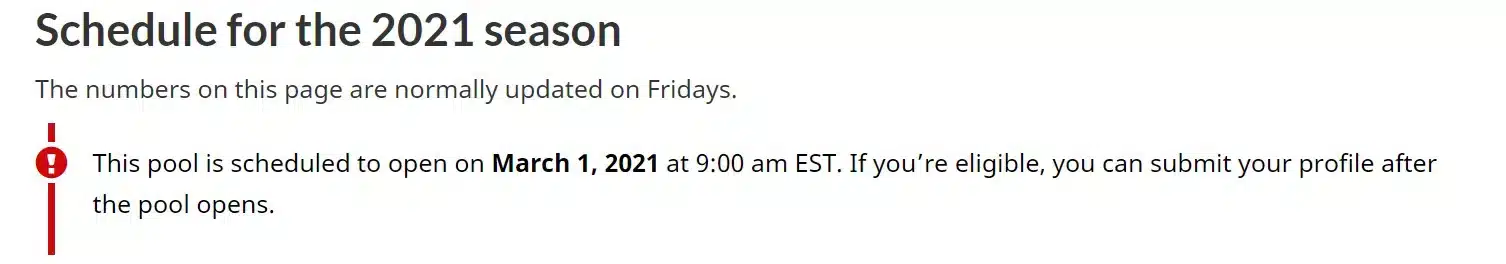 “The pools for certain countries for the 2021 season are opening soon.