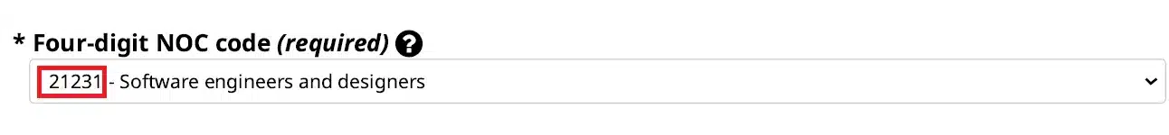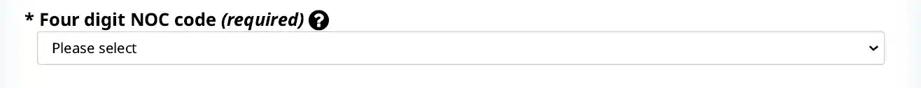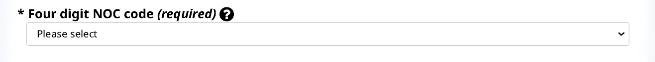 You also have to modify the NOC code in the dropdown – even though the title still says “four digit NOC code”, you MUST update to the five digit format. When you make the change, the code will automatically appear as a five digit number with the occupation you selected.