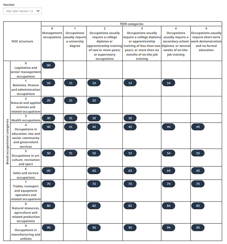 The NOC 2021 Version 1.0 TEER Categories