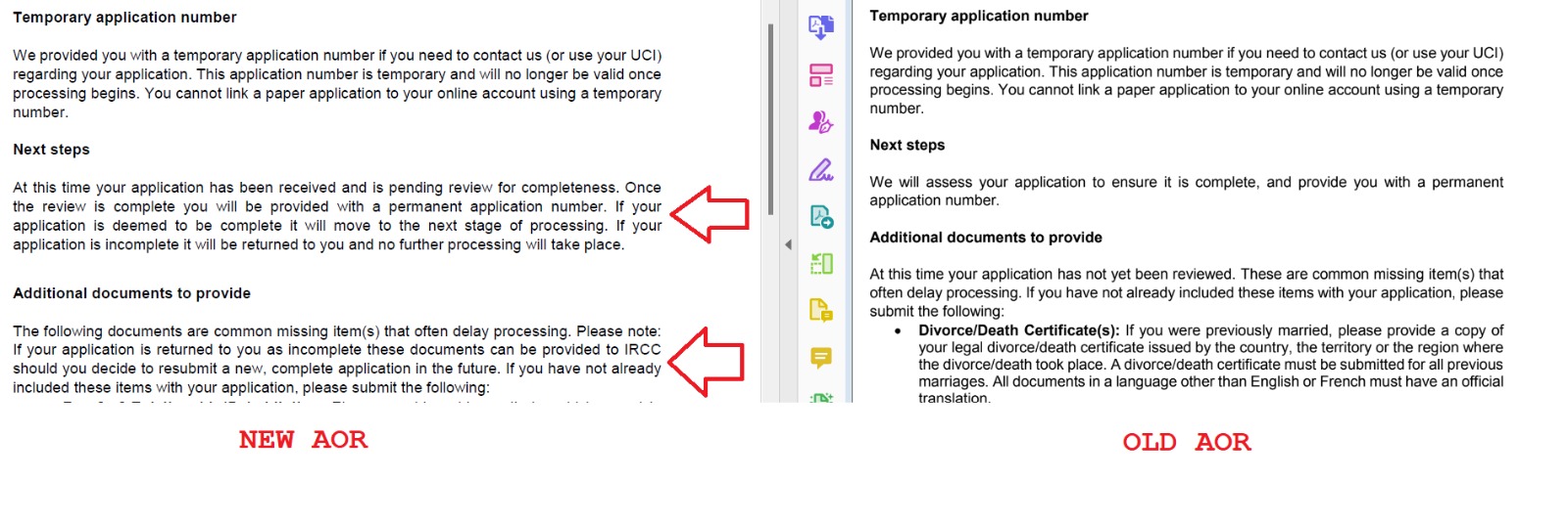 Since the third week of February, we have noticed random cases that have received temporary file numbers in their AORs. Another change that we have seen is that the letter includes an additional section which places an emphasis on returning the application in case IRCC finds it to be incomplete.