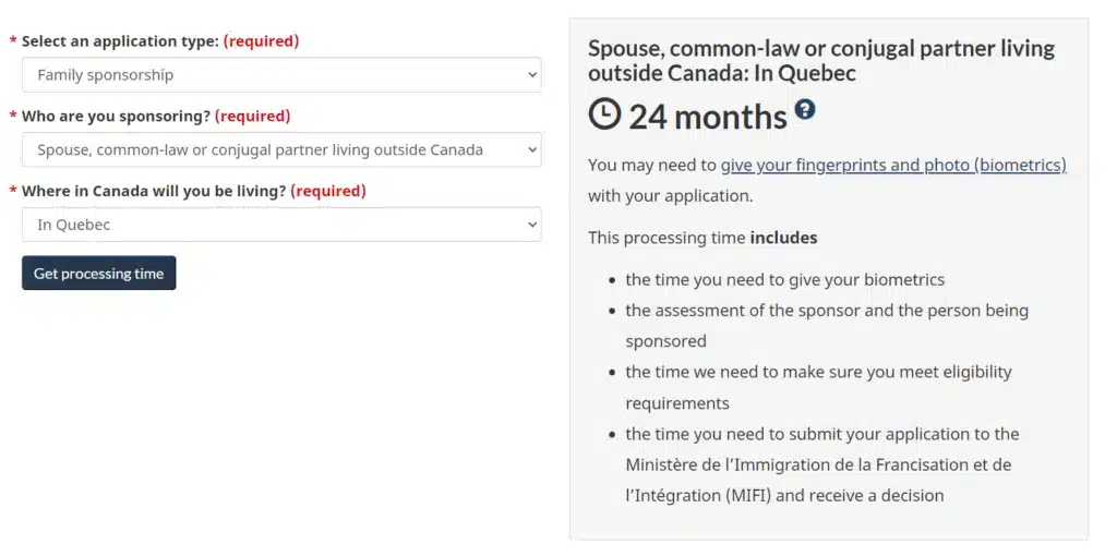 For applicants who are not already inside Canada and are using the outland spousal sponsorship process (also known as overseas or family class spousal sponsorship), the processing time has also increased drastically for applicants destined to Quebec.