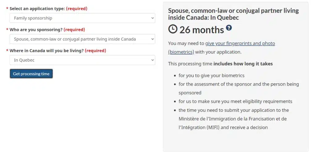For applicants who are not already inside Canada and are using the outland spousal sponsorship process (also known as overseas or family class spousal sponsorship), the processing time has also increased drastically for applicants destined to Quebec.