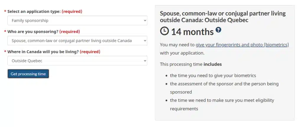 - Overseas (Family Class) Sponsorship (outside Quebec): 14 months