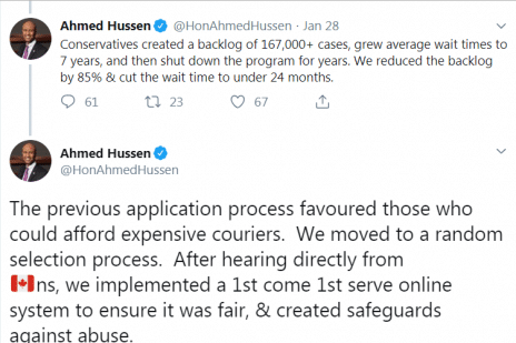 In response to fierce criticism, Minister Ahmed Hussen first blamed the previous government who was last in power in 2015, and then put the onus on Canadians for the disastrous outcome
